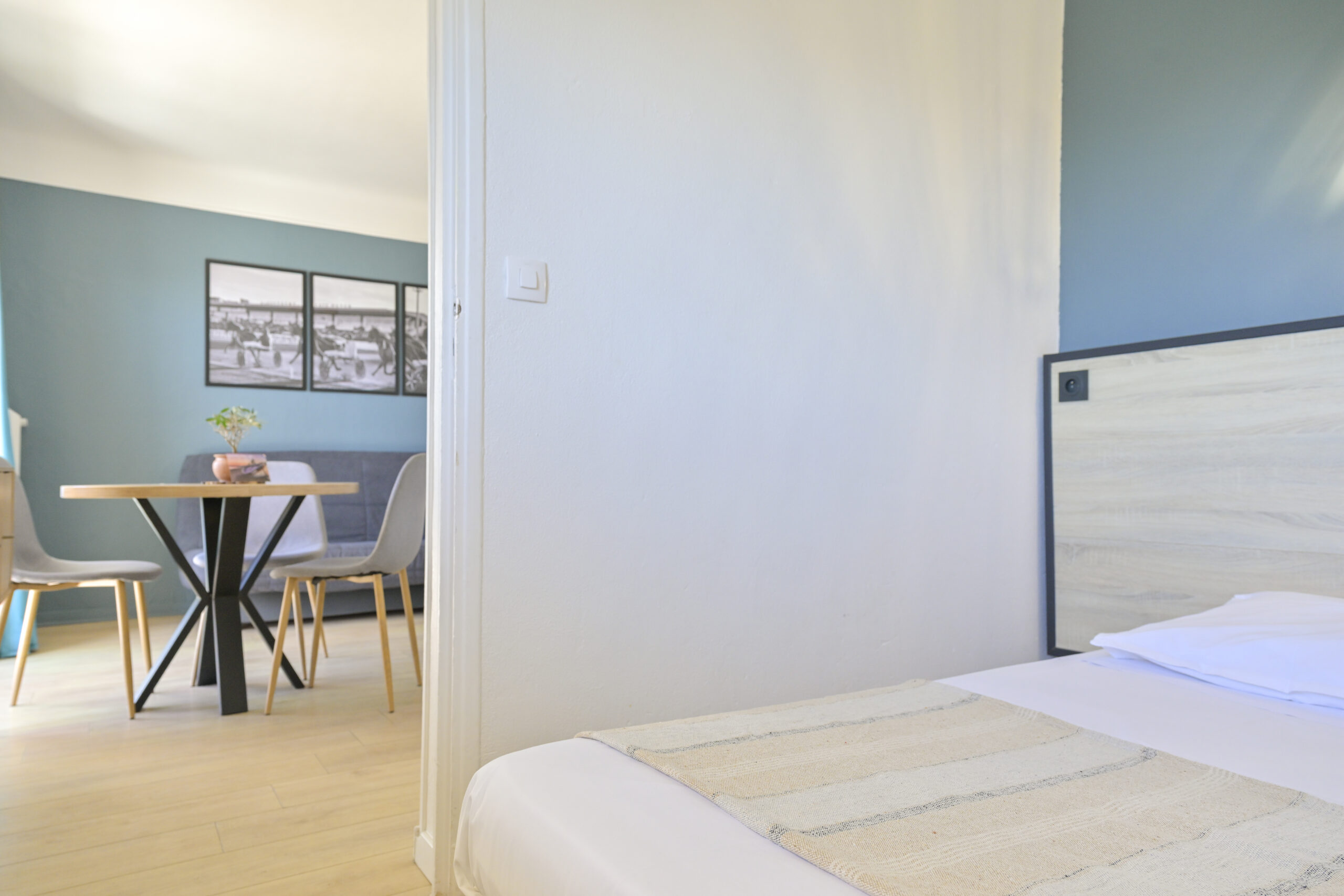 Le studio vue mer sont le pied-à-terre idéal pour vos vacances ou vos déplacements sur la Côte d’Azur. Une expérience unique en contemplant la Grande Bleue depuis votre terrasse exposée plein Sud. Pouvant accueillir de 1 à 4 personnes ( 3 adultes ou 2 adultes et 2 enfants maximum) grâce à son lit double et son canapé-lit, ces logements vous offriront tout le confort lors de vos escapades au soleil. Salle de bain avec baignoire, cuisine indépendante récemment rénovée, placard de rangement…des atouts qui font de ces studios un incontournable de notre hôtel situé à Cagnes-Sur-Mer.