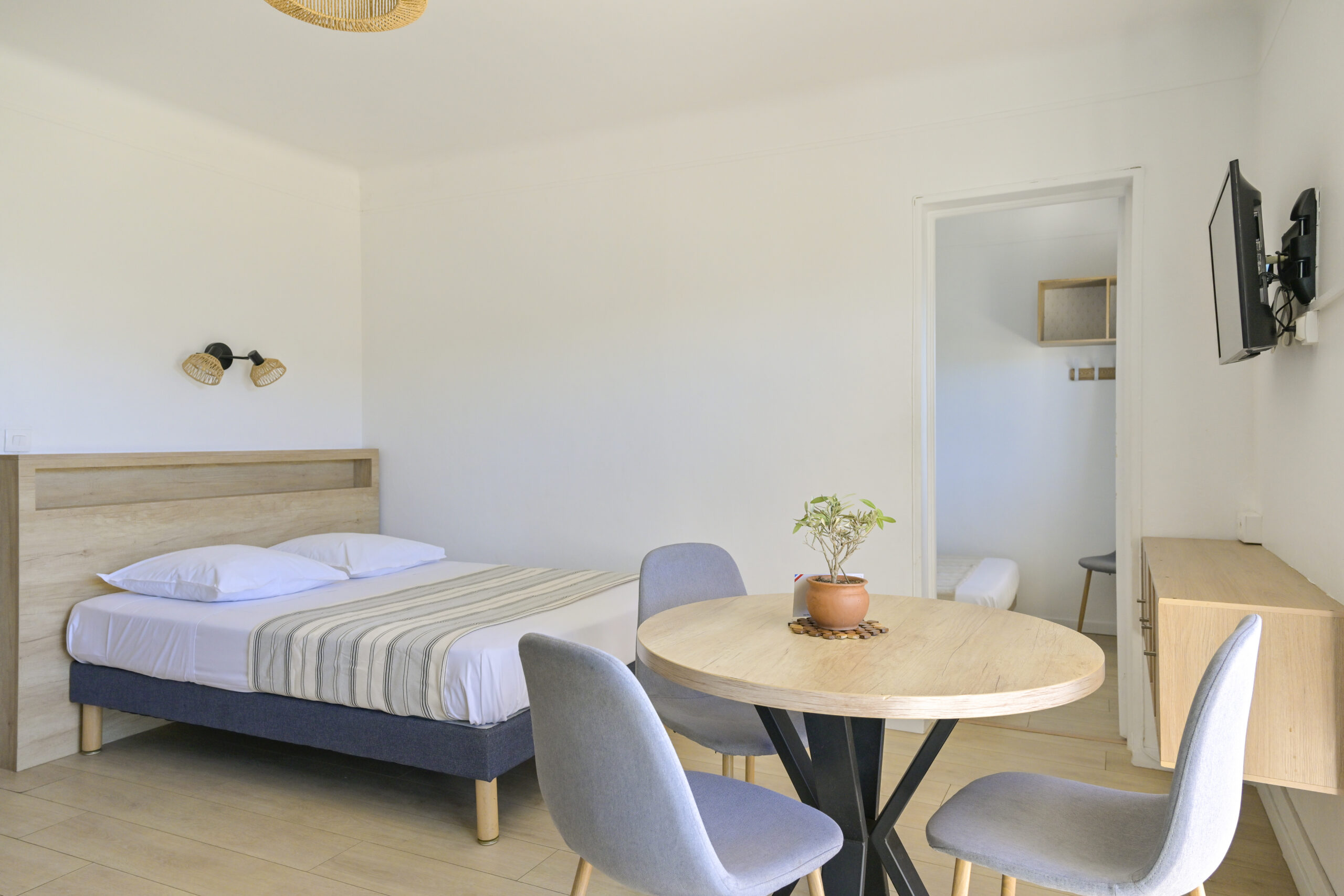 Envie de vacances sur la Côte d’Azur? Le Motel Ascot vous accueille dans ses studios avec vue jardin à 50 mètres des plages. Hébergement bénéficiant d’une terrasse avec vue sur le jardin arboré de notre appart’hôtel situé à Cagnes-sur-Mer, vous aurez le confort nécessaire pour passer un séjour agréable sous le soleil de la Côte d’Azur. Pouvant accueillir accueillir jusqu’à 4 personnes ( 3 adultes ou 2 adultes et 2 enfants maximum), cet hébergement dispose d’un lit double et d’un canapé-lit.